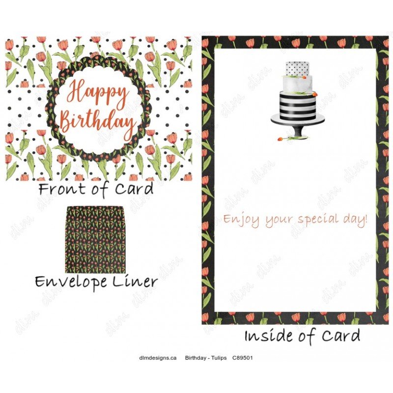 How better to celebrate a birthday than with happy tulips and a beautiful tiered cake! Remember that this card, along with most others, can be customized for any of the special women in your life.